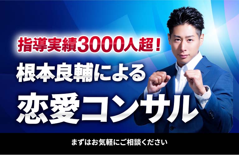 根本さんのコンサルを受けて、最初、吃音もあり女性とのコミュニケーションにかなり支障が出ていたが、根本さんとの電話や対面での指導を受けていくと対女性に対して吃音がなくなり、根本さんに教えていただいた通り接することで良い関係性を構築することができ、彼女も出来、とても自信になりました!どんな問題もマインドに帰結するなと、やはり感じます!強靭なマインドを手に入れる為に、最適解な環境だなと思います。デートの指導で、齋藤さんが実演で教えてくれて、とてもイメージしやすく、それをデートで実践でしていくことができ、言い方や口調、ノンバーバルもイメージしやすい為、とてもいい環境だなと感じます!(Fさん、27歳)